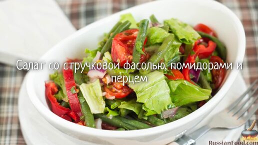 Лёгкое овощное блюдо. Салат со стручковой фасолью, помидорами и перцем