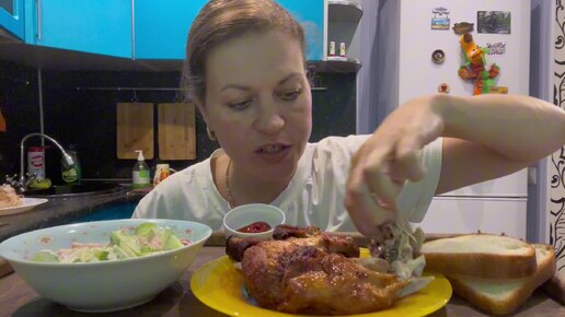 МУКБАНГ УЖИНАЮ ВКУСНОЙ КУРОЧКОЙ ГРИЛЬ/MUKBANG ЕДА ОБЖОР