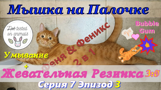 Умывание + Жевательная Резинка. Мышка на палочке Серия 7-3 Кот Феня, он же Феникс