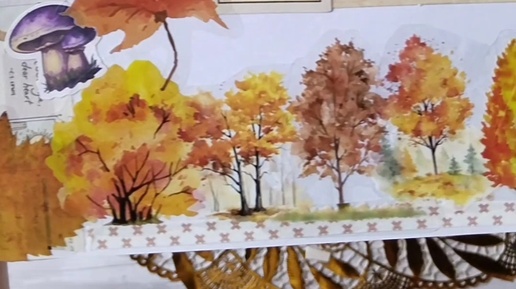 «Прощай, Лето! Здравствуй, Осень» (осенне-летний скрапбукинг разворот)🌿🍁🏠