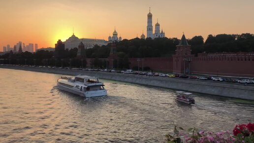 Закатная Москва. Вид на Москву-реку и Кремль с Большого Москворецкого моста.