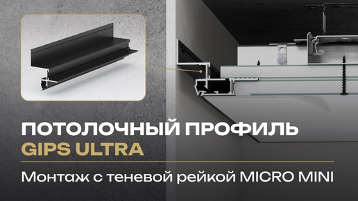 Монтаж потолочного теневого профиля GIPS ULTRA с теневой рейкой MICRO MINI LACONISTIQ