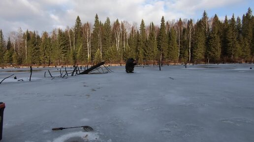 Далее: Первый лёд. Рыбалка на лесном пруду. 08.11.2024