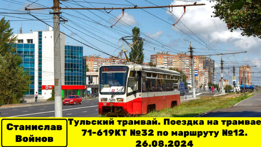 Тульский трамвай. Поездка на трамвае 71-619КТ №32 по маршруту №12. 26.08.2024