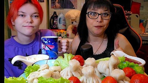 Мукбанг | Хинкали и пельмени домашней лепки. Настя в наличии 😁 Обжорчик 😋