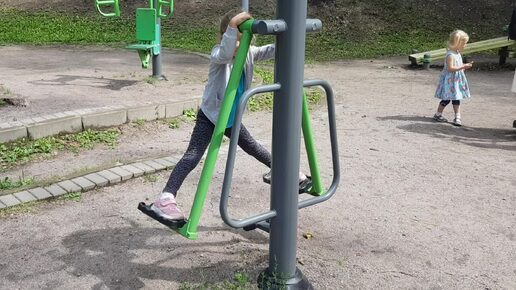 Наблюдаем с Юлей за поведением уток и рыбы в искусственном пруду, а потом активно играем с Лизой на спортивной площадке парка