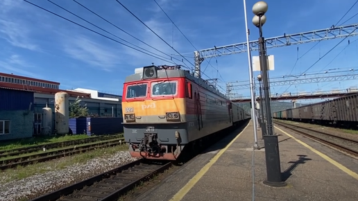 ЭП1-027 с пассажирским поездом отправляется со станции Слюдянка