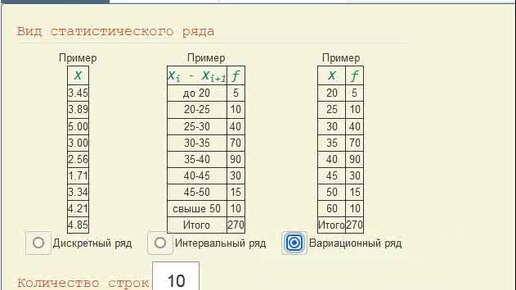 Расчет показателей вариации для вариационного ряда
