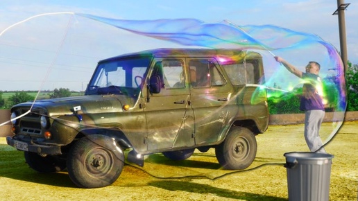 Гигантский мыльный пузырь vs. УАЗ. Эксперименты с рецептами в домашних условиях. Человек в мыльном пузыре
