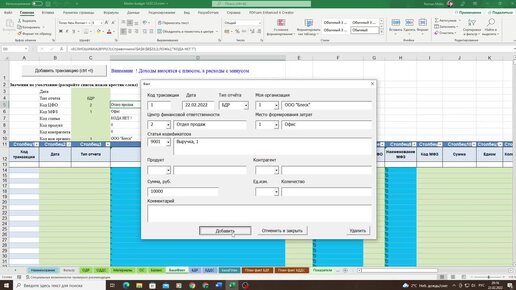 Шаблон Excel файла для управленческой отчётности Master Budget