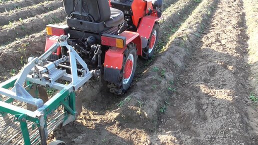Докапываем оставшуюся картошку минитрактором МТЗ и грохотной копалкой.