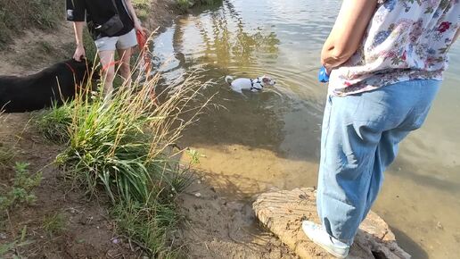Снова спустились к озеру. Вайт поплавал.Лорд, памятуя прежний порыв, в озеро ни ногой: напомню, овчарка сегодня впервые увидела большую воду