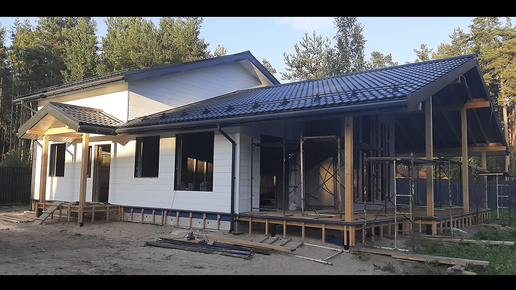 Каркасный дом 11.6 х 15м с террасой и крыльцом.