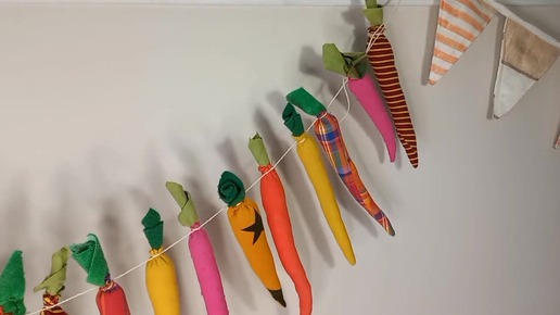 ГИРЛЯНДА из МОРКОВОК. Как сделать текстильные моркови из ткани своими руками. Декор из лоскутков