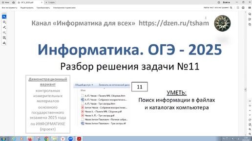 Информатика. ОГЭ - 2025. Задача 11. Поиск с помощью поисковых средств операционной системы и текстового редактора в каталоге Проза