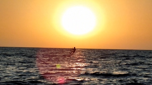 Вингфойлинг на закате. Адлер, сентябрь 2024. Новая активно развивающаяся дисциплина - катание на доске с подводным крылом и вингом.