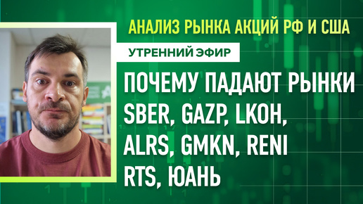 Анализ рынка акций РФ и США/ Почему падают рынки SBER, GAZP, LKOH, ALRS, GMKN, RENI/ RTS, ЮАНЬ