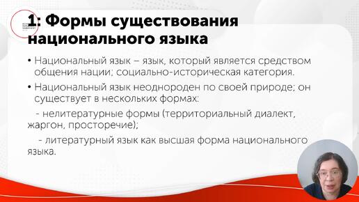 ID1594 Лекция 4. Формы существования национального языка. Литературный язык, признаки литературного языка