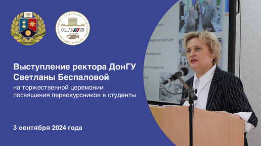 Выступление ректора ДонГУ Светланы Беспаловой на торжественной церемонии посвящения первокурсников в студенты
