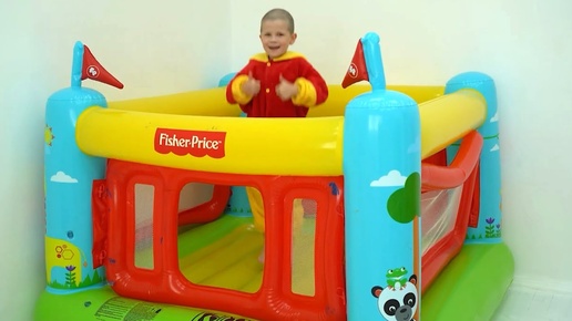 Ребенок проснулся и увидел из окна дома надувной батут и побежал прыгать на нем