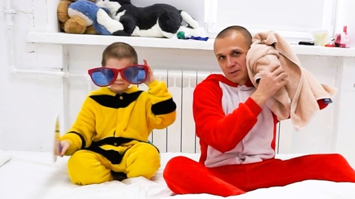 The child woke up and went with dad to play on the beach