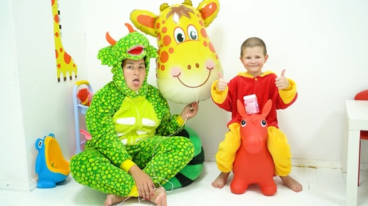 Ребенок привязывает маму к шарику которая играет со слаймом