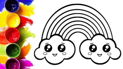 Как раскрасить кавайную Радугу и облака, простые рисунки для детей