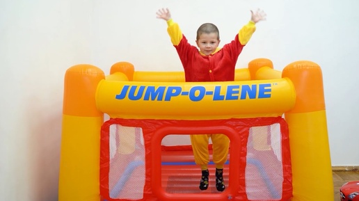 Ребенок прыгает на надувном батуте мама запрещает. Он начал хитрить и залез в батут