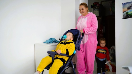 The child does not want to sleep in bed and falls asleep in the stroller with a pacifier in his