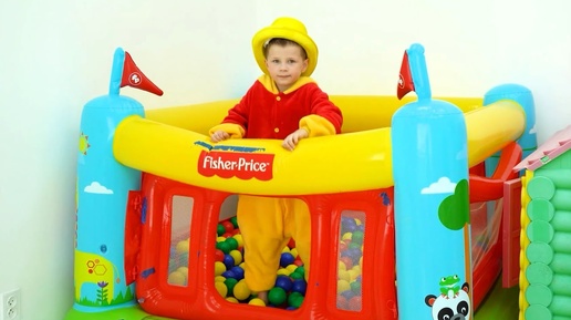 Ребенок хочет попрыгать на надувном батуте и кушает еду чтобы вырости