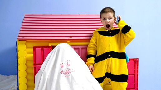 Ребенок играл на планшете, а мать постирала простыню и напугала его привидением.