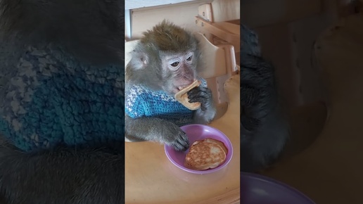 просто "доброе утро " всем👋😋🥞#monkey #money home #animals #завтрак #макака #обезьяна #гиббон