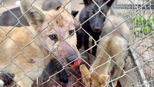 ВОЛЧАТА впервые пробуют КРОВЬ и осетра. Парк Северных Волков.