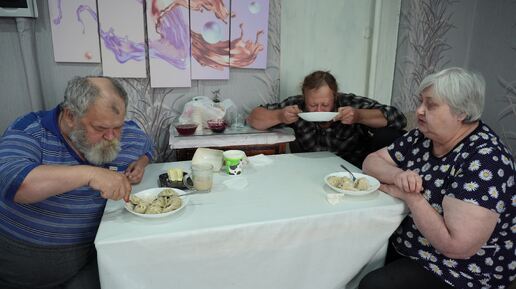 Вкусно кушаем домашние манты с пароварки всей семьей