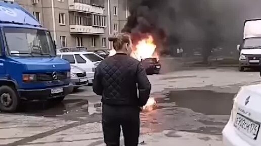 Вся в огне и дым по двору! В Челябинске на ул. Чичерина, 35б загорелась машина