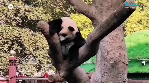 Панда Катюша не может усидеть на месте. Весь мир такой интересный, да вот хотя бы это дерево!