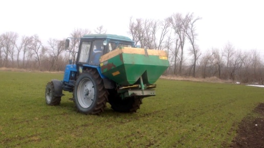 Внесение удобрений румом по пшенице. Трактор МТЗ 80