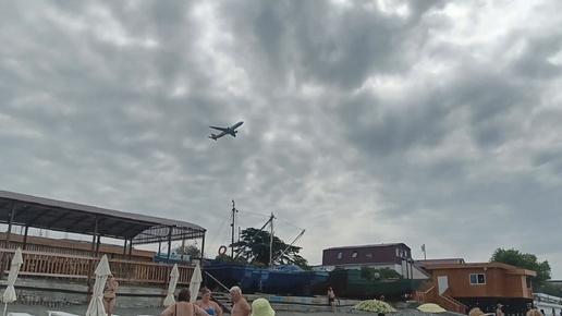 Развлечение на пляже в Адлере - наблюдаем взлёт и посадку огромных авиалайнеров Airbus A 330. 04.09.2024 пляж "Огонёк-3".