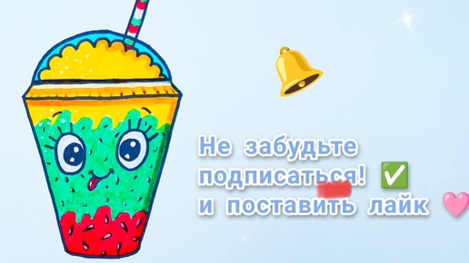 Нарисовать коктейль в стаканчике (клубника, киви, банан)