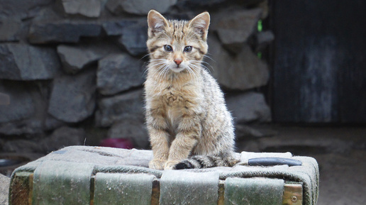 Европейские лесные котята вместе с папой перед сном решили развлечься.