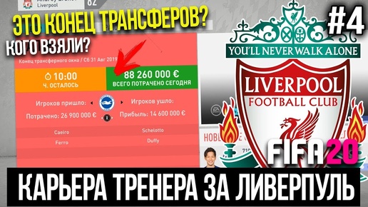 FIFA 20 | Карьера тренера за Ливерпуль [#4] | ЭТО КОНЕЦ ТРАНСФЕРНОГО ОКНА? КОГО КУПИЛИ?