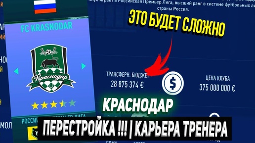 ПЕРЕСТРОЙКА ФК КРАСНОДАР !!! КАРЬЕРА ТРЕНЕРА FIFA
