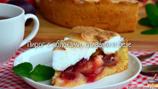 Безе превращает обычный пирог в праздничный. Пирог с яблоками, сливами и безе