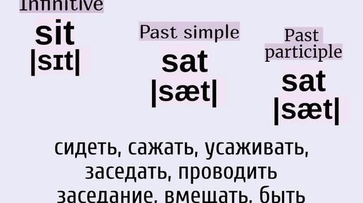 Неправильные глаголы в примерах👉sit, sat, sat