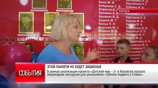 ТК "Родной". В рамках реализации проекта «Детский мир – 2» в Кировске прошла пешеходная экскурсия для школьников «Тропою подвига и Славы»