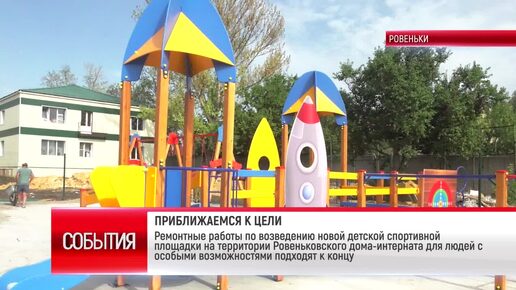ТК "Родной". Ремонтные работы по возведению новой детской спортивной площадки на территории Ровеньковского дома-интерната