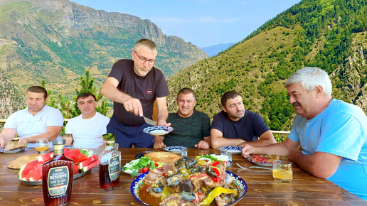 Долгожданная встреча с друзьями и приготовление вкусного ужина в горах Дагестана! Хашлама из говядины в казане / Хачапури на мангале