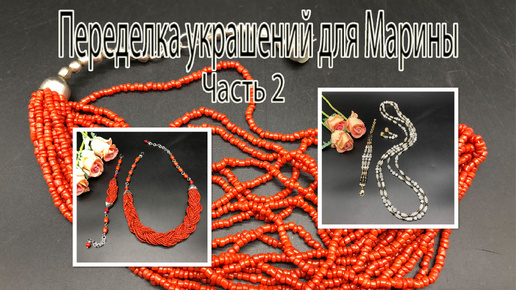 Лариат с сатиновыми бусинами. Колье "косичка" с коралловым бисером. Украшения для Марины. Часть 2.