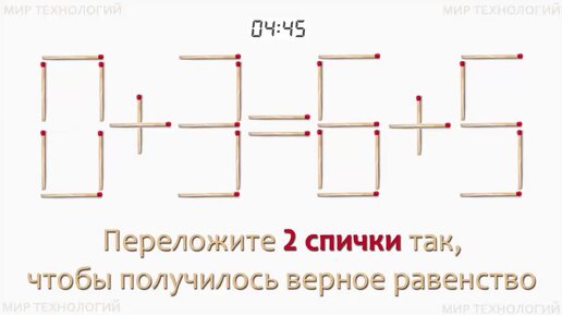 Задача 222. Переложите 2 спички так, чтобы получилось верное равенство (0+3=6+5)