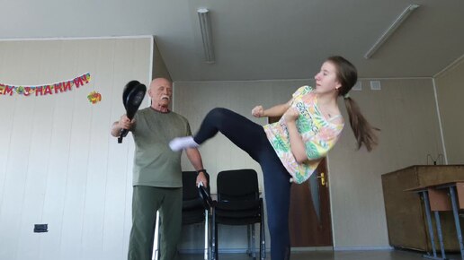Урок женской самообороны . Работа на ракетках.